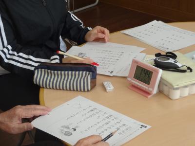 15:05~ デイサービスシルバーネスト見学(音楽レク・くもん学習療法の教材)